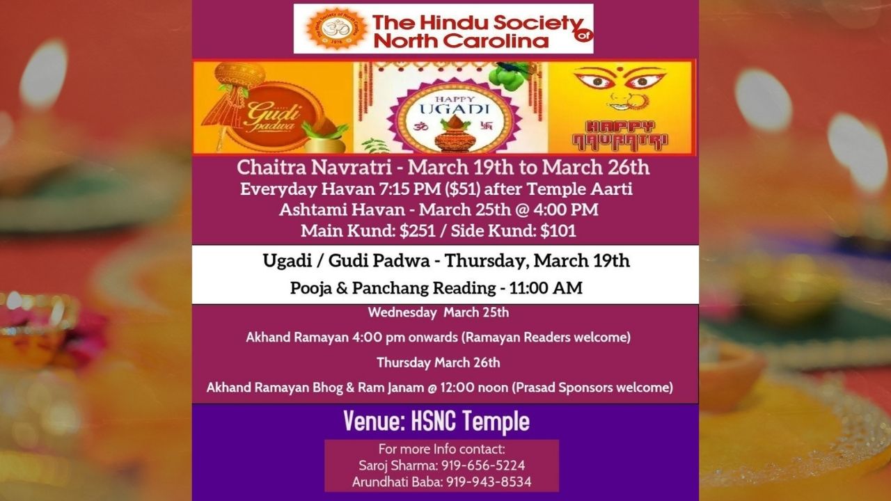 • Ashtami Havan (March 25th): 4:00 PM