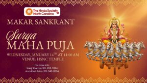 Join the HSNC community for Surya Makarkrant Maha Puja, held on the auspicious occasion of Makar Sankranti—a festival dedicated to Lord Surya and marking the Sun’s transition into Makara (Capricorn).