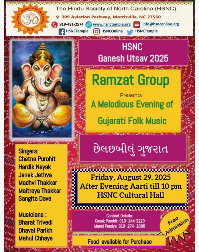 Celebrate the spirit of Ganesh Utsav with an enchanting night dedicated to the vibrant folk music of Gujarat! Join us as the talented Ramzat Group brings you “છેલછબીલું ગુજરાત”—an unforgettable musical journey filled with energy, tradition, and joy.