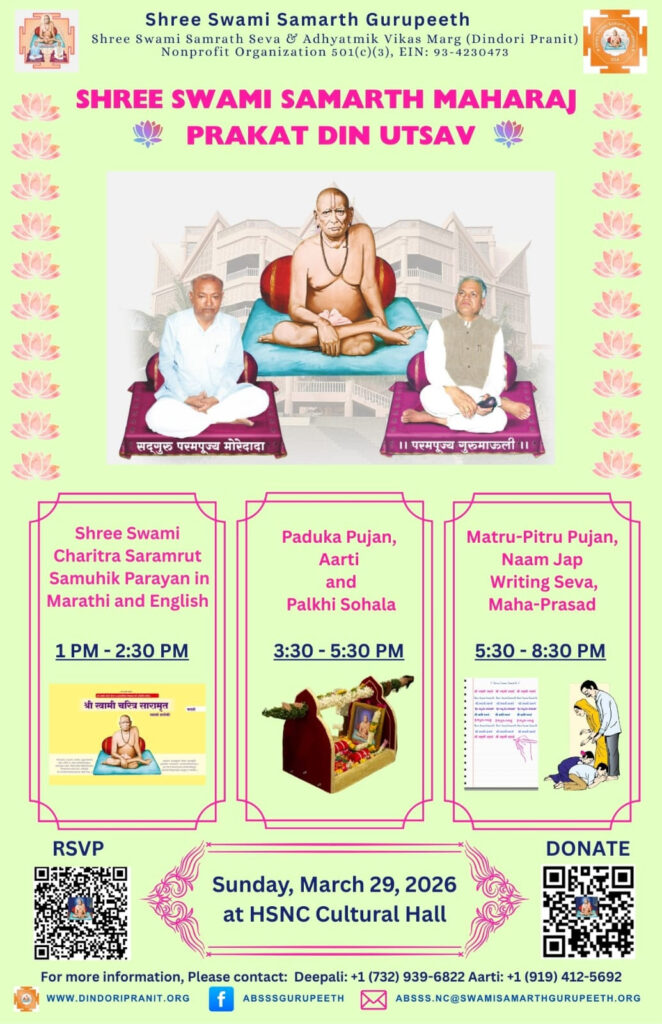 Join us for the sacred celebration of Shree Swami Samarth Maharaj Prakat Din Utsav, organized by Shree Swami Samarth Gurupeeth (Dindori Pranit). Experience a